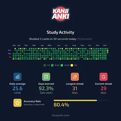 Stop forgetting what you learn. KanjiAnki uses a smart Spaced Repetition System (SRS) to schedule reviews at the perfect moment, ensuring long-term memory of every single kanji you study.